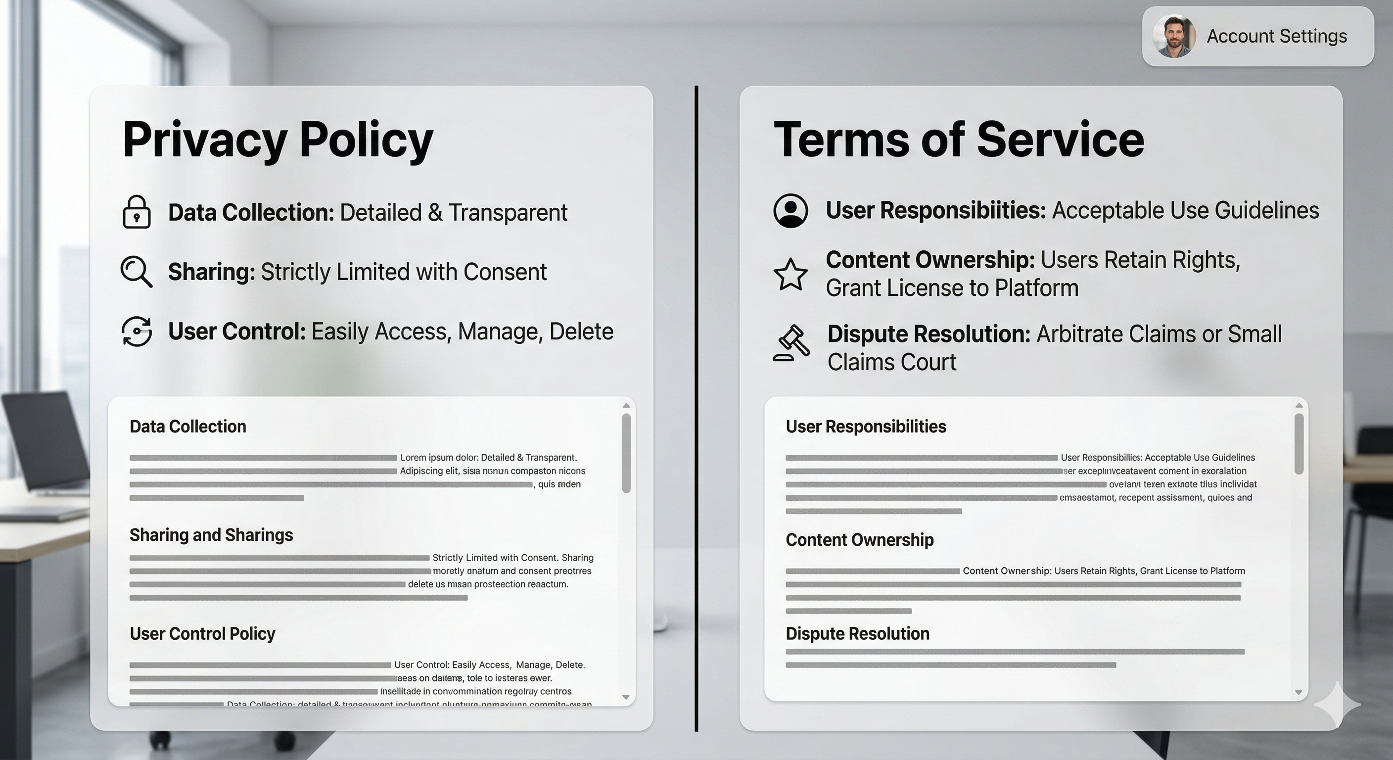A privacy policy and terms and conditions are not interchangeable — they are complementary. Together, they create a strong legal foundation for your business.